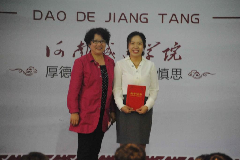 胥文华老师做了以《爱心立德 奉献树人》为题目的演讲,开场以左丘明的话表明了身为教师立德树人的重要性。随后讲述在担任专业课教师和辅导员过程中的具体细节,认为只要能做好学生工作,赢得学生们的赞同,再累再忙也是幸福的。整个过程,胥文华老师声情并茂,现场气氛一度达到高潮,赢得了评委和观众的一致认可。最后,胥文华老师获得了演讲比赛的一等奖,校党委副书记张坤书为其颁奖。