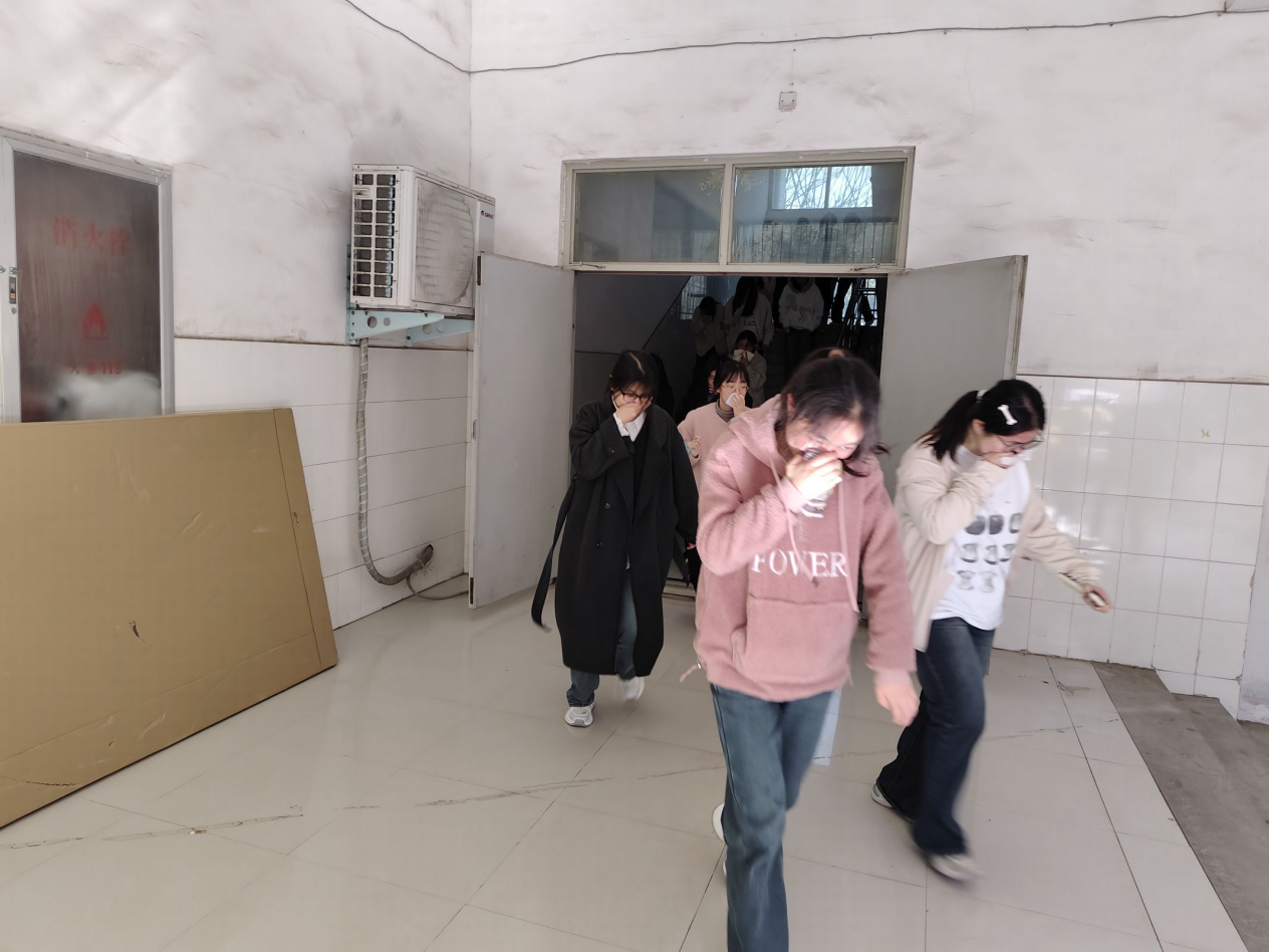 活动中,魏见岭向全院师生重点讲授高校易发生火灾场所火灾风险防范、火场疏散逃生方法、常用灭火设施使用和初起火灾处置方法等消防安全知识,牢记119消防报警电话。应急逃生演练环节,学生们在相关老师的指导下,按照“弯腰低姿、捂住口鼻”的指令,沿逃生路线有序撤离至楼下安全地带集合。最后,消防科人员在楼下集合点为学生讲解干粉灭火器的使用方法及操作注意事项,并进行实操演示。同时,邀请部分学生进行现场灭火演练,讲解操作要点,其他师生代表进行观摩学习,确保每位参与者掌握基本灭火技能。