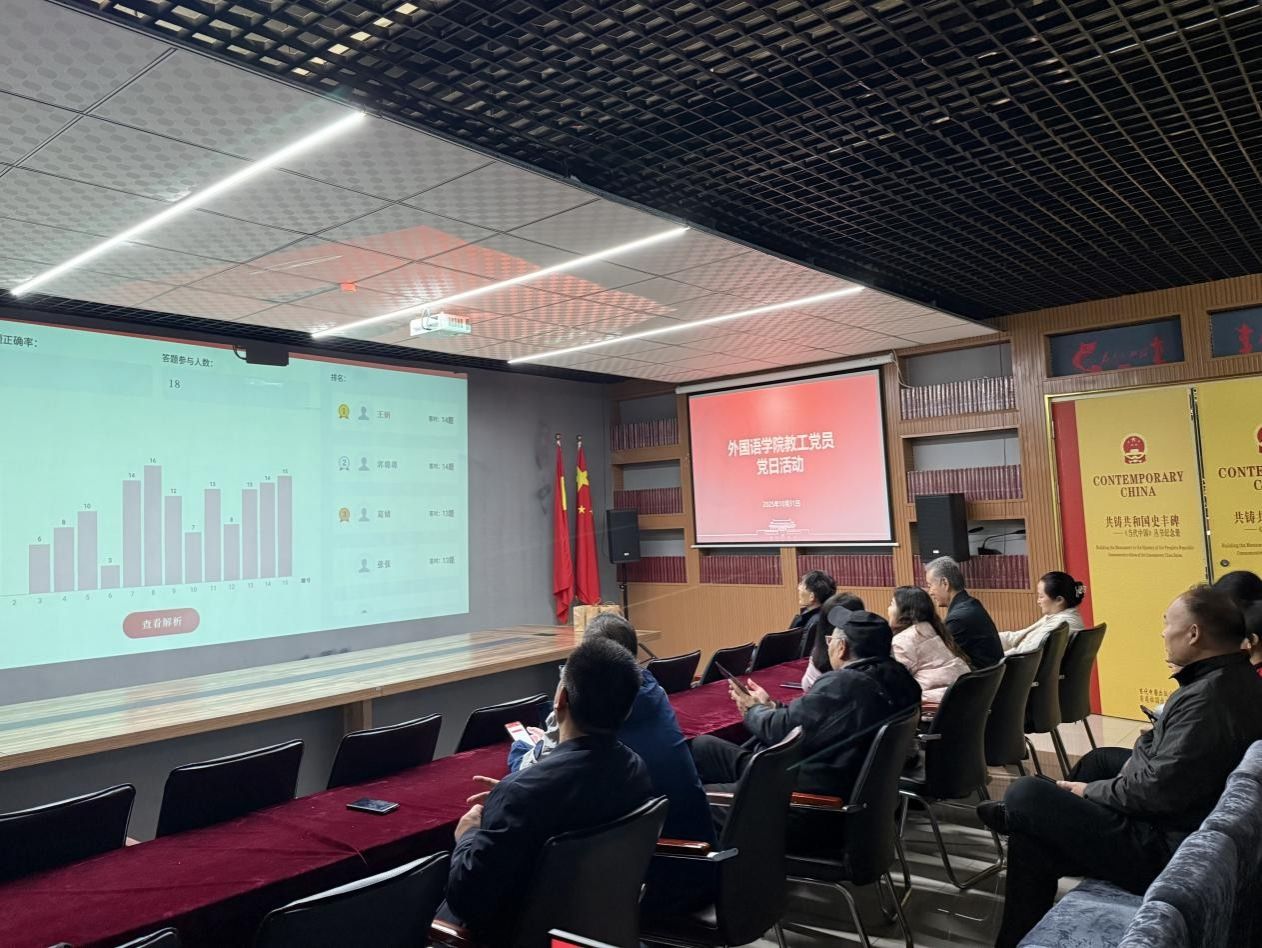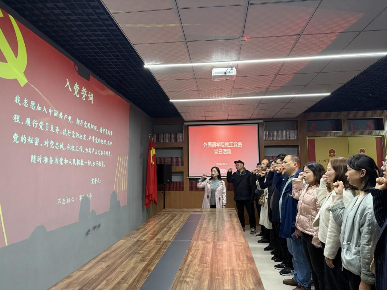 参观结束后,全体教师在党建活动室集中参加了“学习强国”平台专题知识竞答,现场答题气氛严肃而热烈,展现出我院教师党员扎实的理论素养和良好的学习成效。随后,在党委书记王宏的领誓下,全体党员面向鲜红党旗,庄严举起右拳,重温入党誓词,铿锵有力的宣誓声响彻大厅,传递出教师党员坚守初心、履职尽责的坚定信念。