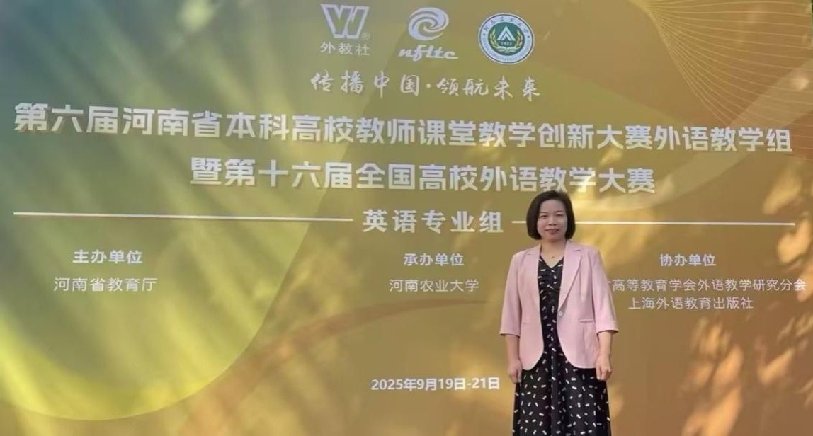 本次大赛由河南省教育厅主办,河南省高等教育学会外语教学研究分会、上海外语教育出版社协办,河南农业大学、河南财经政法大学、郑州商学院等院校承办。我校教师经过学校初赛、省级复赛、省级决赛的层层选拔,与来自省内五十余所本科院校的数百支教师团队同台竞技,凭借扎实的专业素养、创新的教学设计和精彩的现场展示脱颖而出,斩获佳绩。