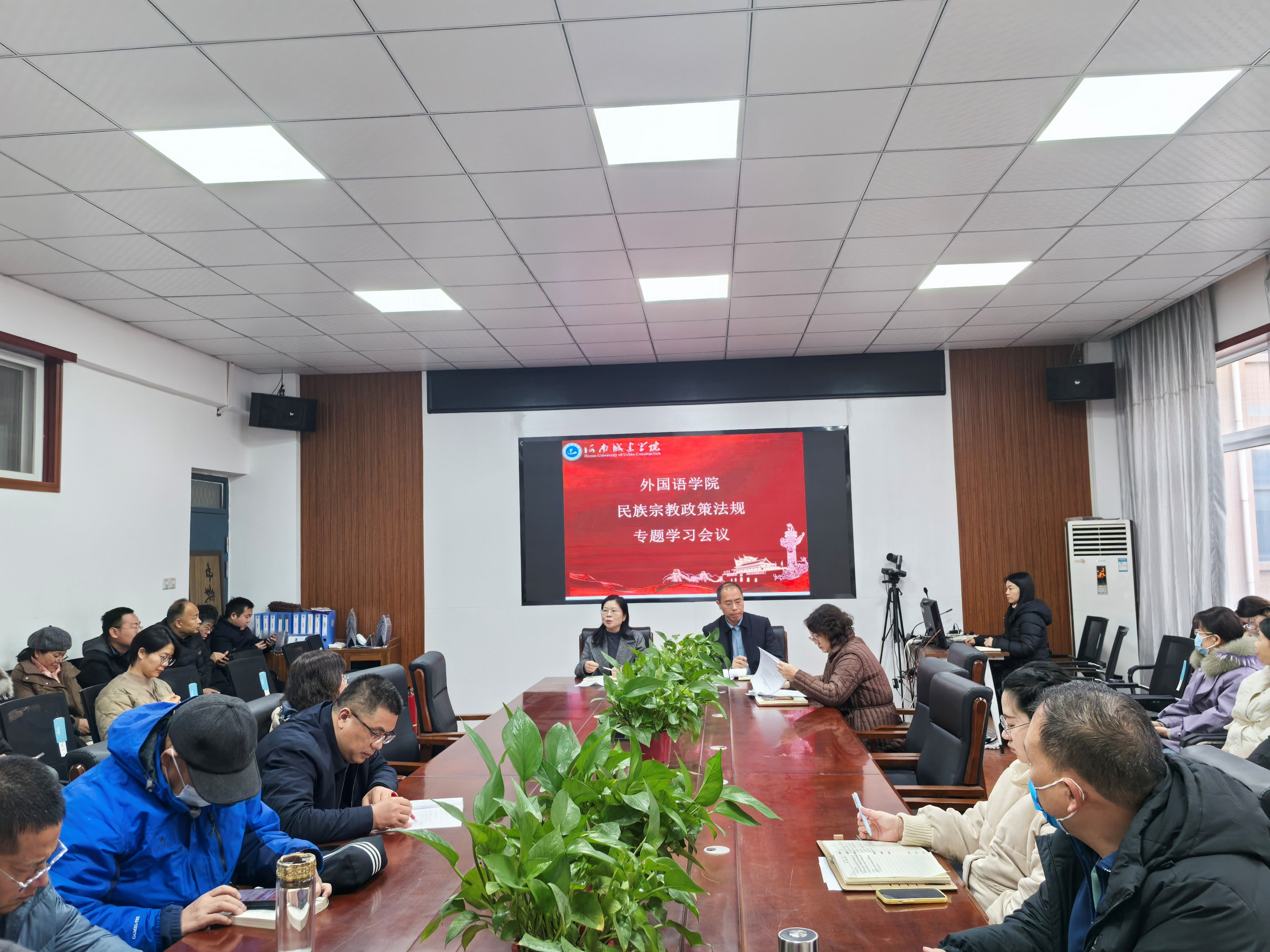 为深入学习贯彻中央关于民族宗教工作的最新精神和决策部署,引导全体教职工完整准确全面把握党的民族宗教政策法规核心要义,2025年11月11日,外国语学院组织全体教职工在306会议室开展民族宗教政策法规专题学习会,会议由学院党委书记王宏主持。