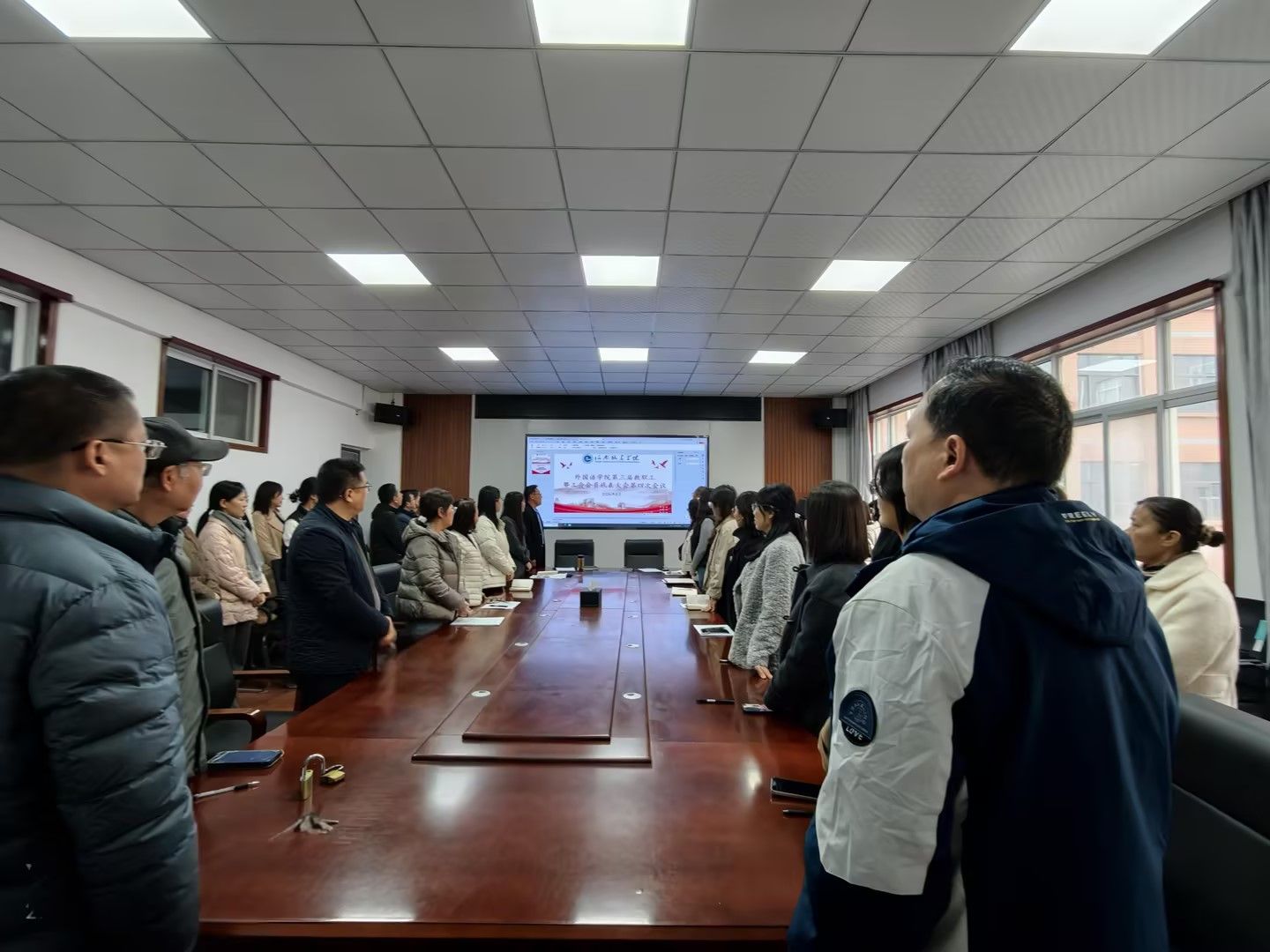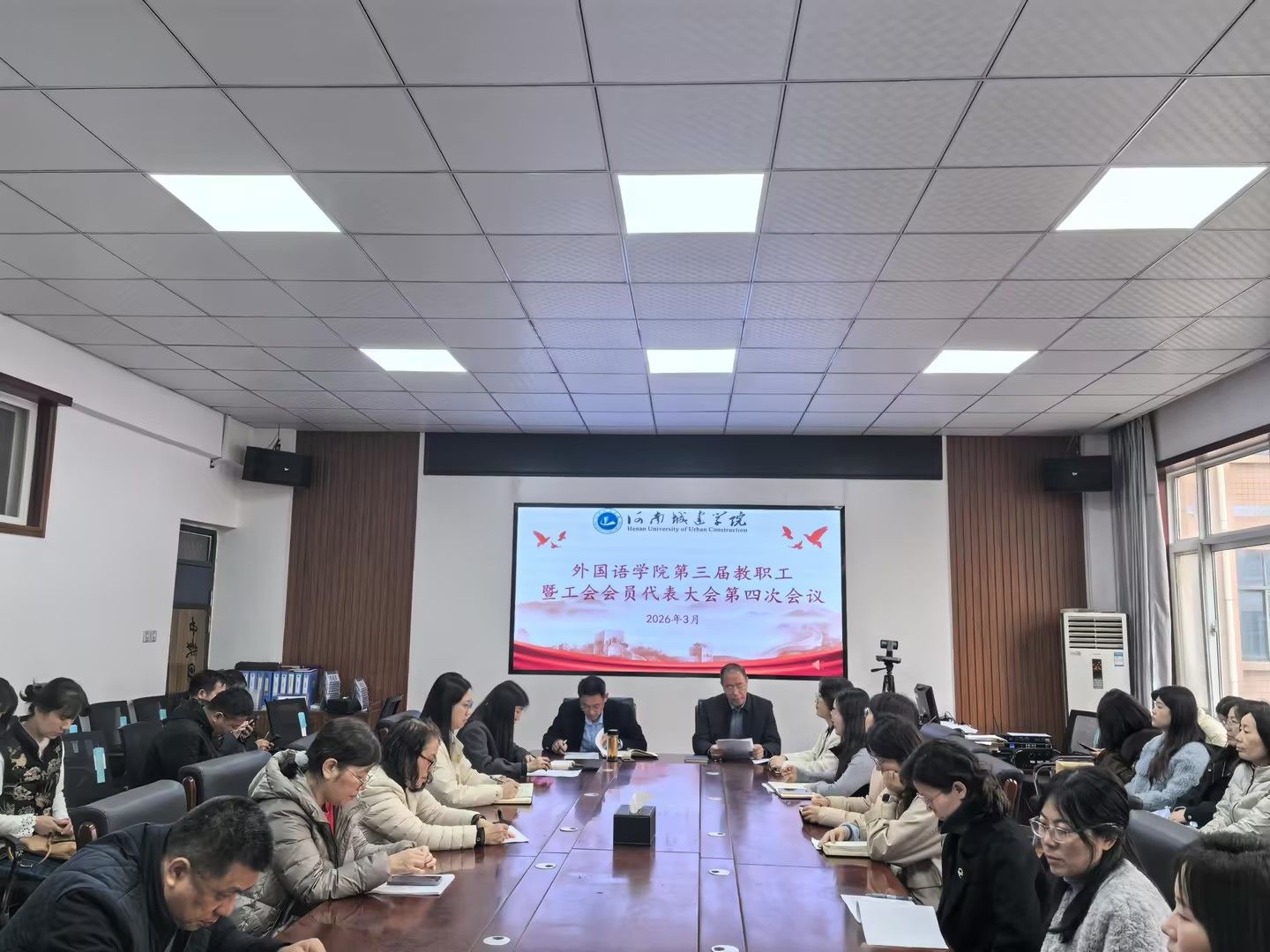 3月11日上午,外国语学院第三届教职工暨工会会员代表大会第四次会议在学院306会议室召开。会议由学院党委书记王军豪主持,全体教职工参会。