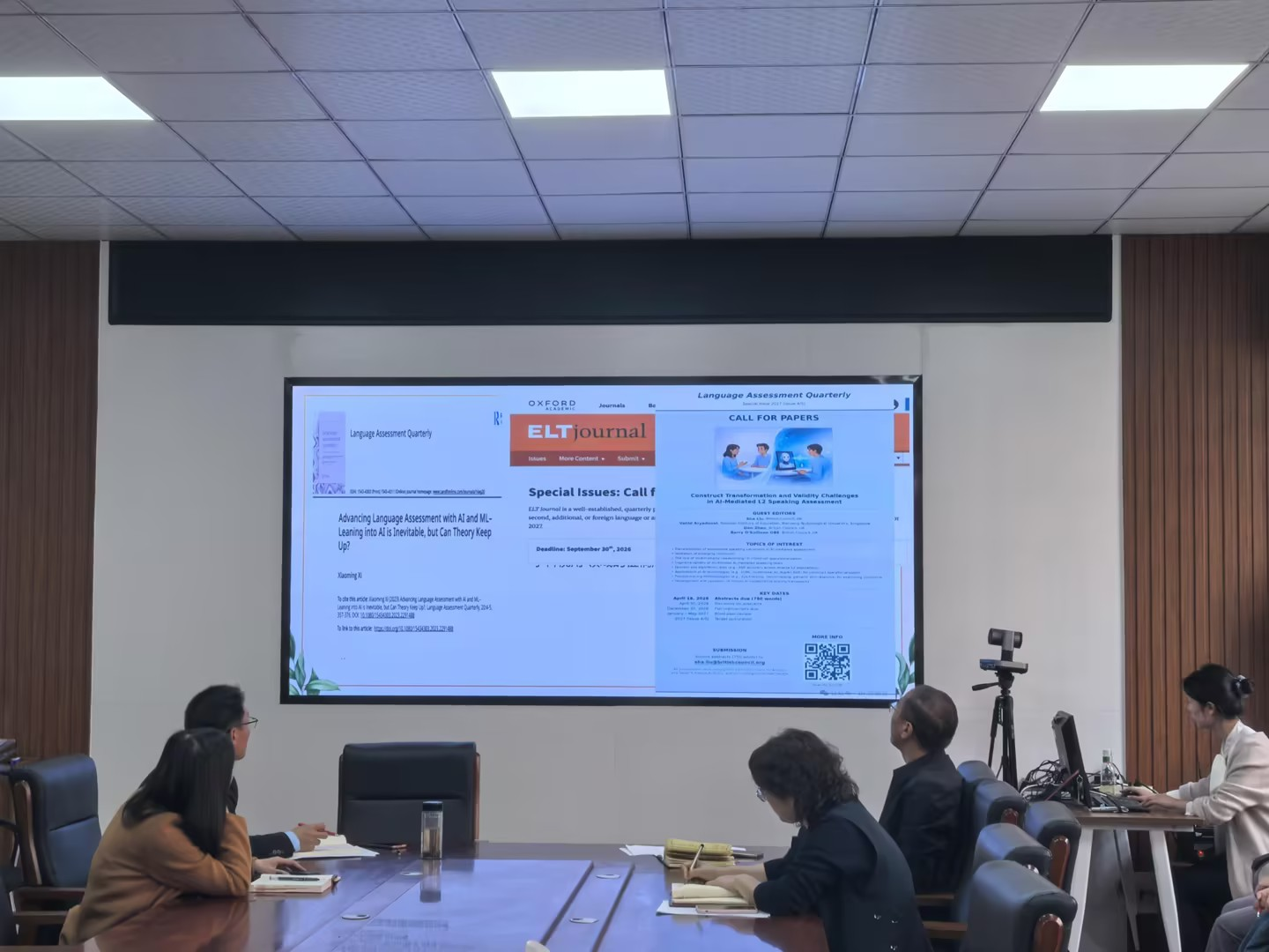 为提升教师科研素养,促进学术论文写作、国际期刊投稿交流及语言测评前沿技术探讨,4月7日下午,外国语学院在306会议室成功举办“学术论文写作与AI时代的语言测评创新研究”专题汇报会。本次汇报会由副院长张凤琴主持,时春燕老师主讲,全院教职工参会。