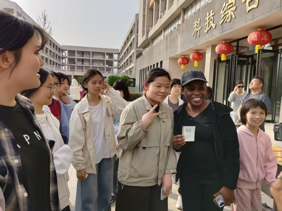 4月14日下午,我校外国语学院师生受邀带领9名国际教育学院留学生,走进平顶山市第一高级中学首届科技文化节活动现场,与该校百余名师生展开了一场科技与文化的跨界交流。此次活动由翻译系主任李攀登老师带队,韦星宇等多名外国语学院学子全程深度参与。在科技文化体验环节,留学生们在外国语学院学生的协助下,与一高学子积极互动。