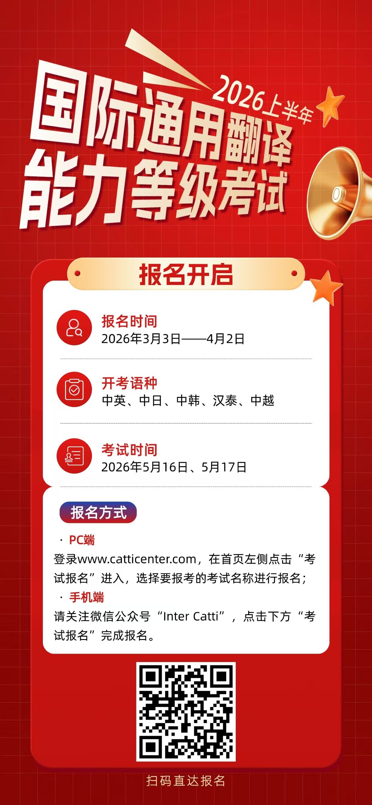 2026年上半年中英翻译能力等级考试报名通知